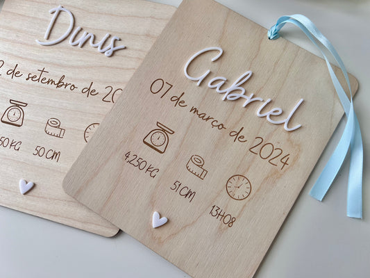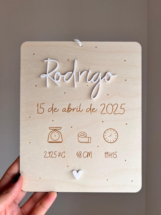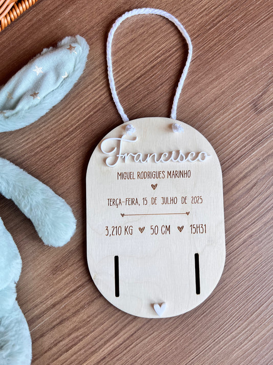 Plaquinha retangular de nascimento para bebé com pintinhas