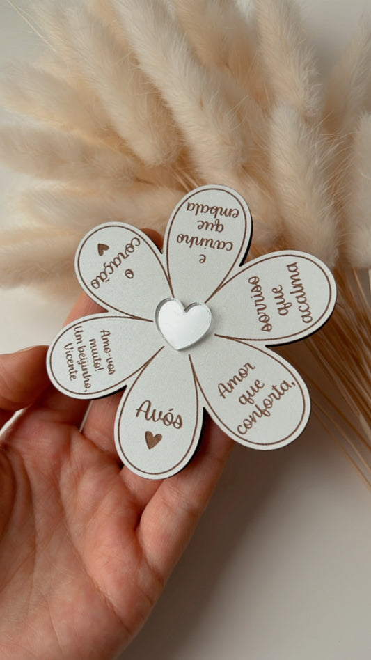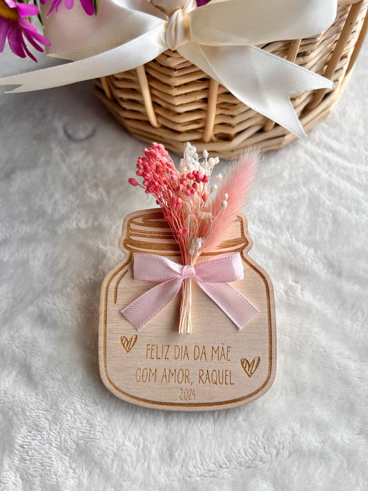 Íman em Madeira com Flores Secas e Mensagem Personalizada – Prenda Original Dia da Mãe