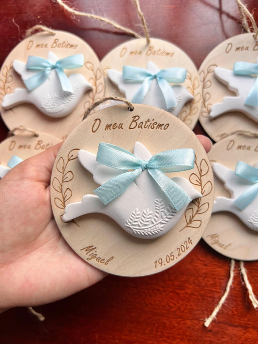 Em promoçãoLembrança com base de madeira e pomba de gesso