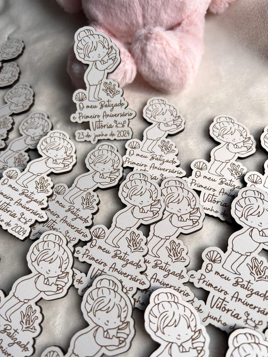 Lembrança de batizado / 1º aniversario em formato de menina com tema do mar