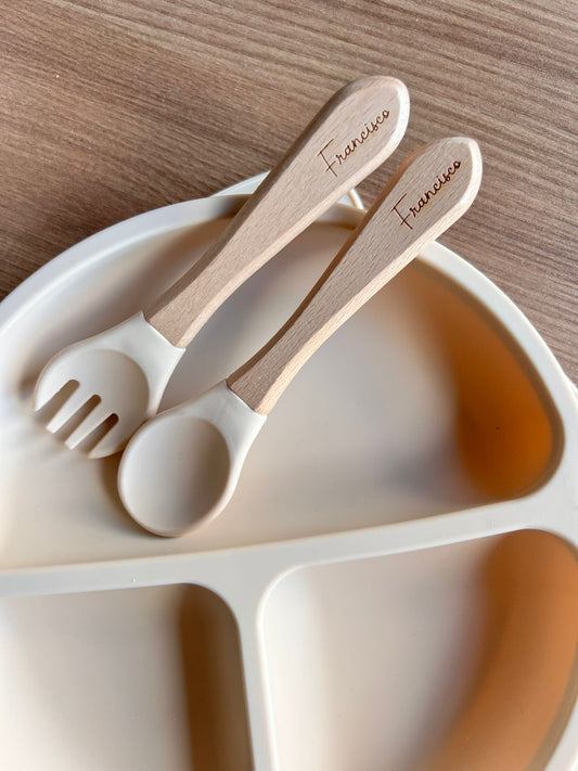Tigela, prato, talheres e babete personalizável