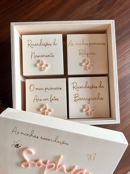 Caixa de memórias de madeira para Bebé – Modelo Arco Íris