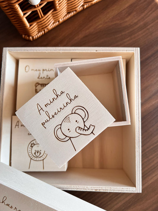 Caixa de memórias de madeira para Bebé – Modelo Animais da Selva