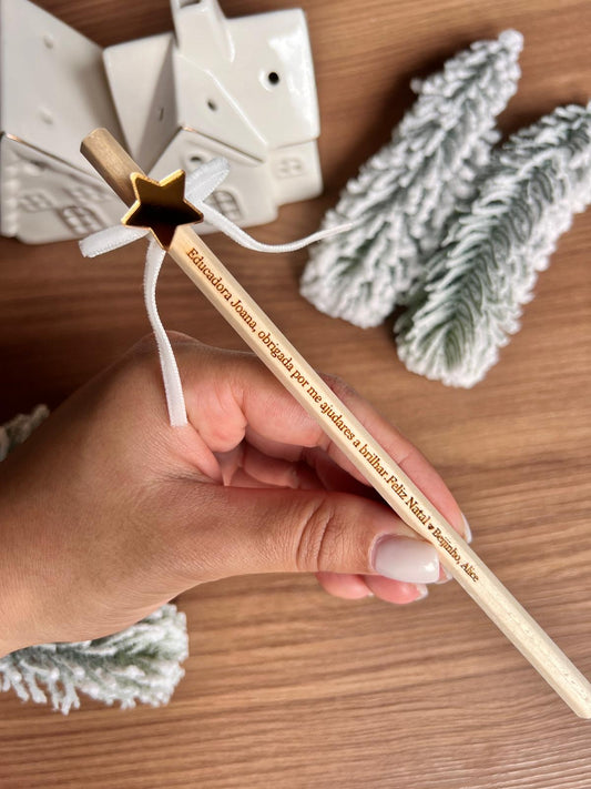 Caneta ou Lápis de Bambu Personalizado | Presente de Natal para Educadoras, Auxiliares e Professoras