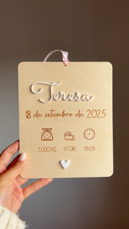 Plaquinha retangular de nascimento para bebé