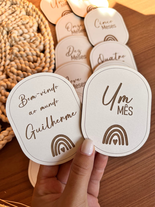 Conjunto de Placas em Madeira para Registar os Primeiros Meses do Bebé – Personalizado com Nome