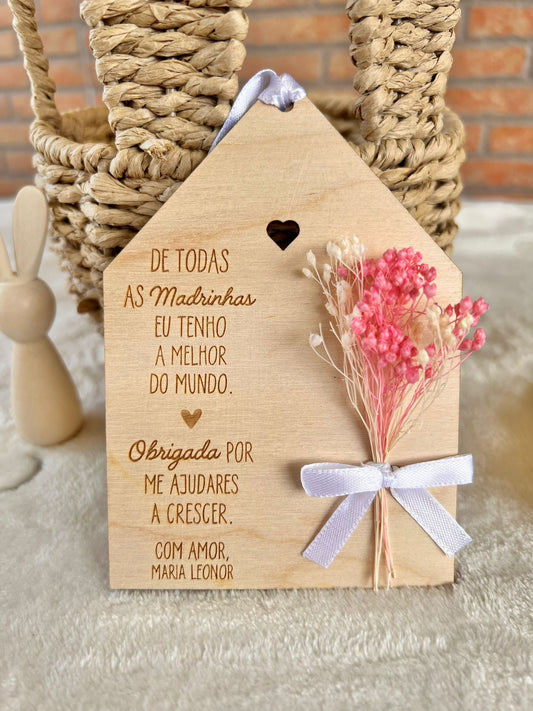 Lembrança Personalizada em Madeira e Acrílico com Flor Giratória – Presente Especial para o Dia dos Avós